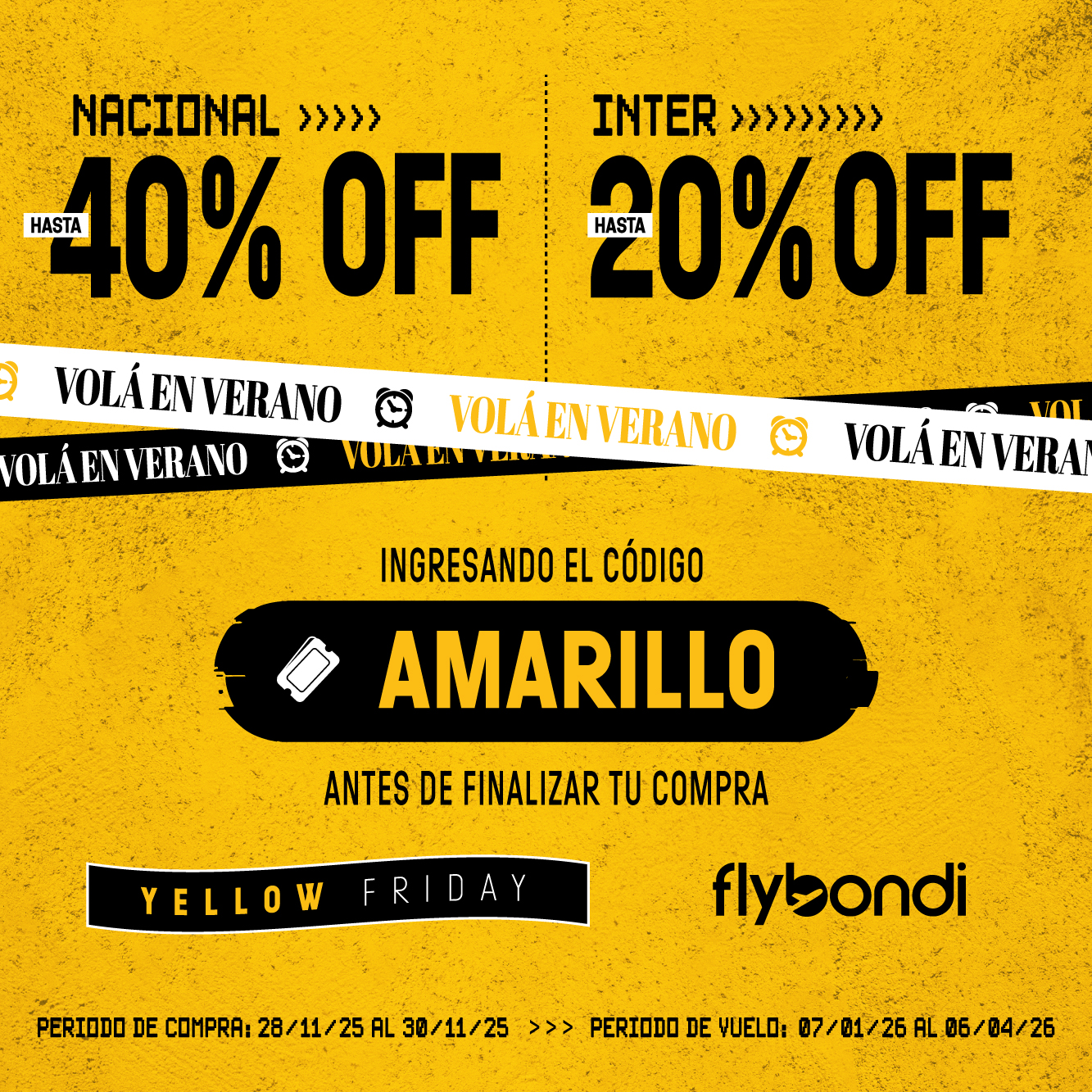 Bases y condiciones: https://flybondi.com/ar/informacion-legal/bases-y-condiciones-codigo-amarillo-2025